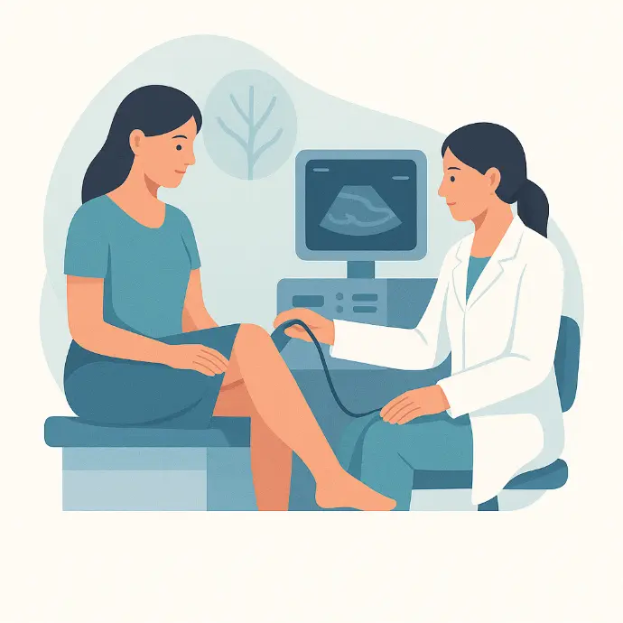 Evaluación clínica para detectar y tratar de forma no invasiva la patología venosa periférica. Tratamos várices, telangiectasias, flebitis, varicorragia, trombosis venosa, úlceras de pierna, linfedema y linfangitis.